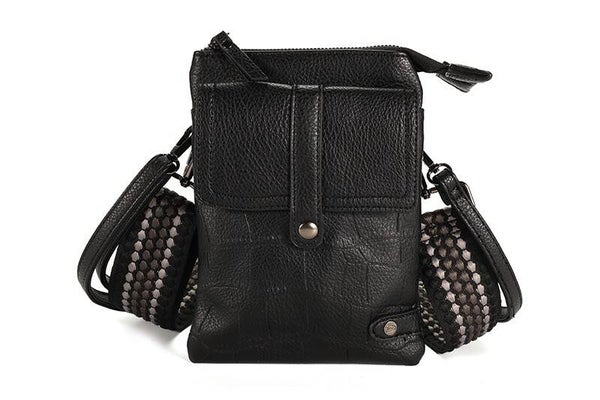 Dit stoere telefoontasje heeft twee vakken die met een rits afzonderlijk worden afgesloten. Het tasje bevat genoeg ruimte voor ieder merk mobiele telefoon, maar heeft daarnaast ook plek voor andere benodigdheden zoals sleutels, geld en pasjes. De Tyler wordt geleverd met twee schouderbanden; een effen smalle band, en een geweven brede schouderband / bagstrap.