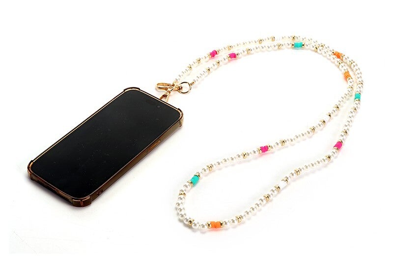 Deze ketting bevestig je simpel tussen jouw smartphone en telefoonhoesje. Lengte 120cm - Inclusief bevestiging (het kaartje)